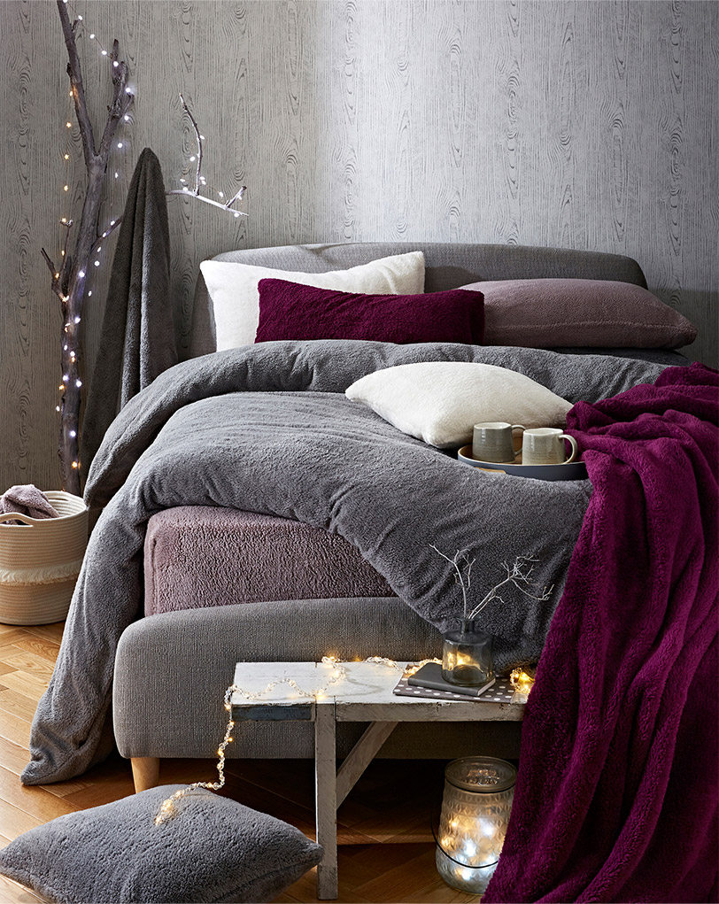 at homeAs the weather drops, wrap up in cosy throws, warm electric blankets and snuggly bedding keeping you warm as you hibernate at home.